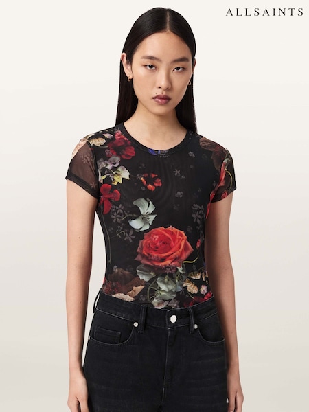 AllSaints Black Ellie Mesh T-Shirt