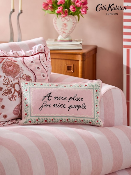 Cath Kidston Pink Nice Place Slogan Needlepoint Cushion