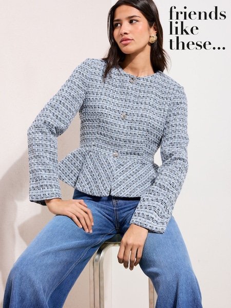 Friends Like These Blue Peplum Boucle Blazer Jacket