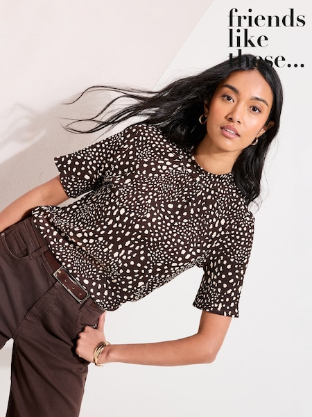 Friends Like These Brown Spot Crinkle Top