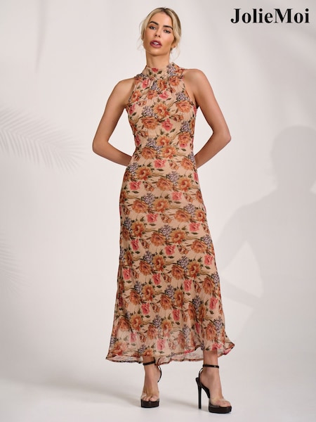 Jolie Moi Natural Printed Halterneck Midaxi Dress