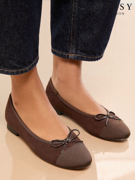 Lipsy Chocolate Brown Wide Fit Wide Fit Faux Suede Toe Cap Ballerinas Shoes
