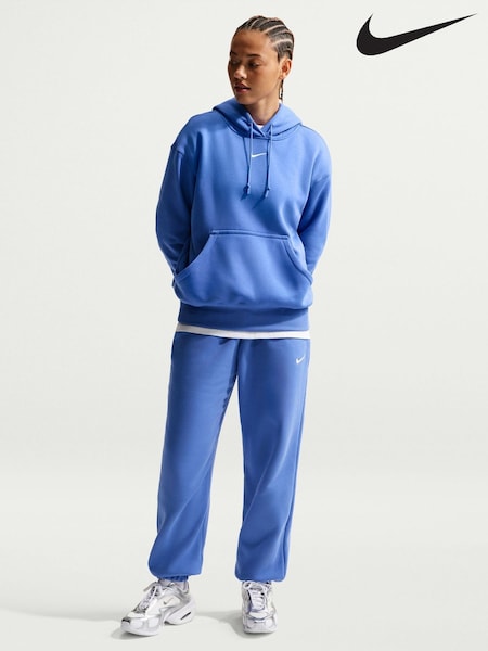 Nike Medium Blue Oversized Mini Sportswear Phoenix Fleece Swoosh Pullover Hoodie