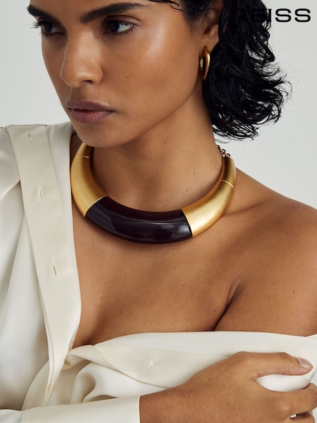 Reiss Gold Paige Curve Resin Choker Necklace