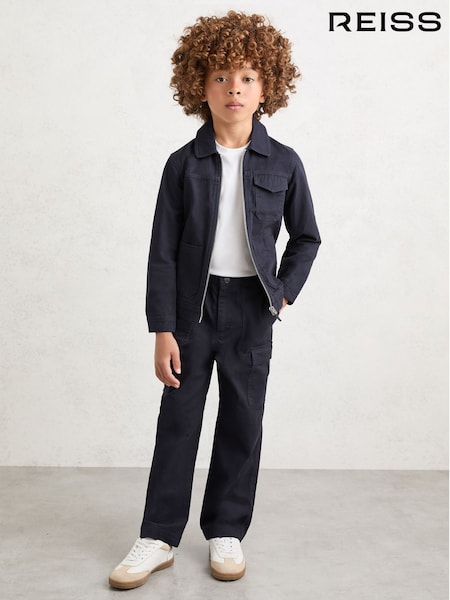Reiss Navy Alpine 9-13 yrs Cotton Wide-Leg Cargo Trousers