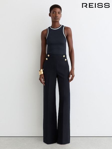 Reiss Navy Carley Petite Wide-Leg Button-Detail Trousers