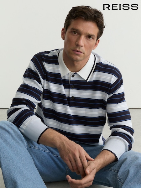 Reiss Blue Multi Scrum Ruby-Stripe Half-Button Jumper