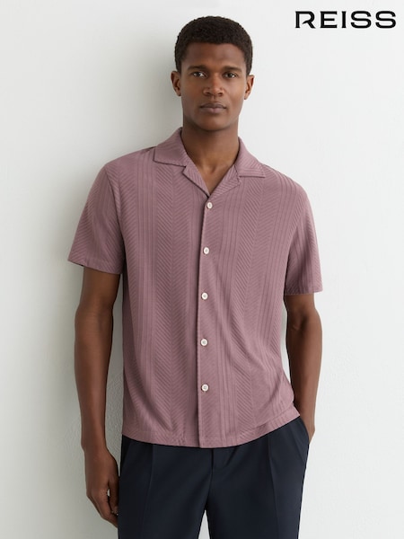 Reiss Rose Pink Frederick Jacquard Cuban-Collar Shirt