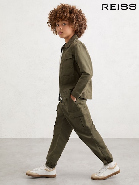 Reiss Khaki Helix 3-9 yrs Cotton Cuffed Cargo Trousers