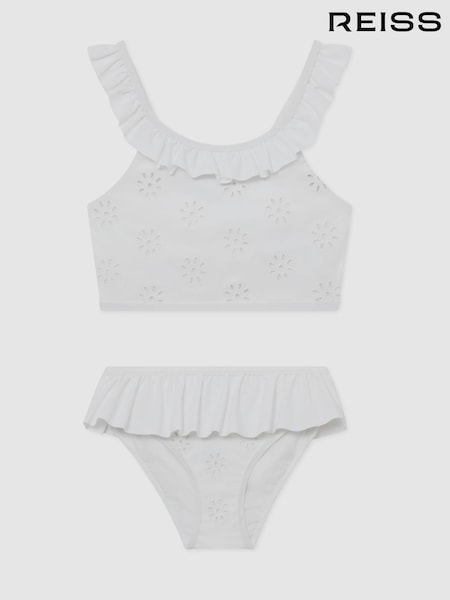 Reiss White Maxine Broderie Peplum Bikini Set