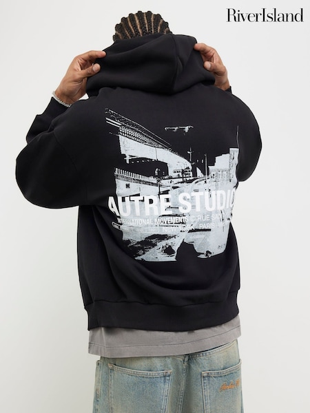 River Island Black Oversized Palais Dept Zip Through Hoodie