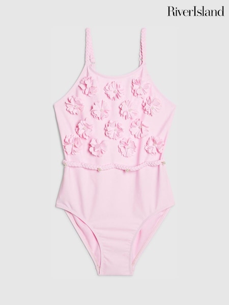 River Island Pink 3D Flower Swimsuit
