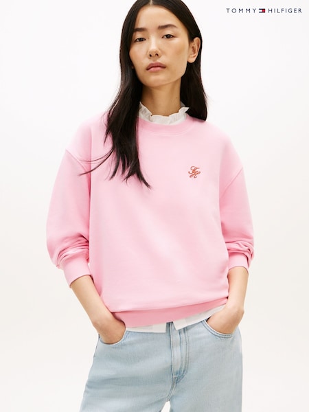 Tommy Hilfiger Pink Logo Embroidery Crew Neck Sweat Top