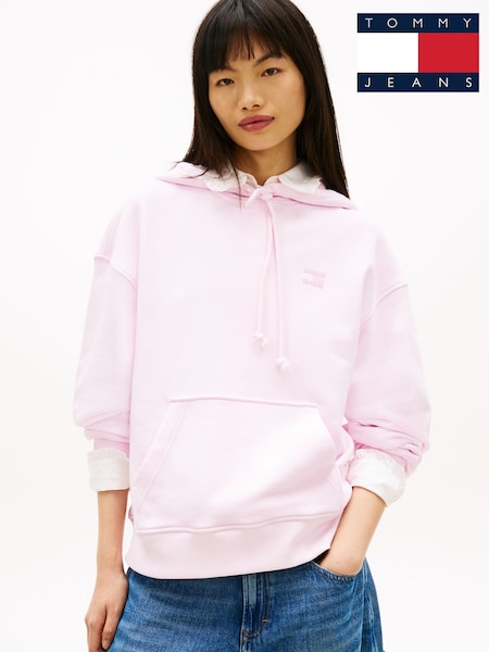 Tommy Jeans Pink Badge Brushed Terry Boxy Hoodie