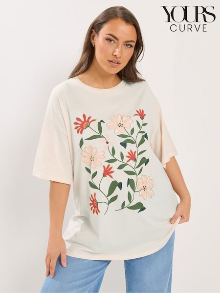 Yours Curve Pink Floral Print T-Shirt