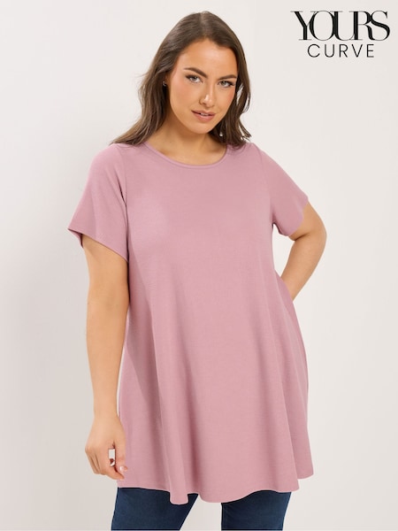 Yours Curve Pink Shimmer Ribbed Swing T-Shirt