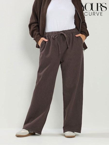 Yours Curve Brown Pull On Wide Leg Jean
