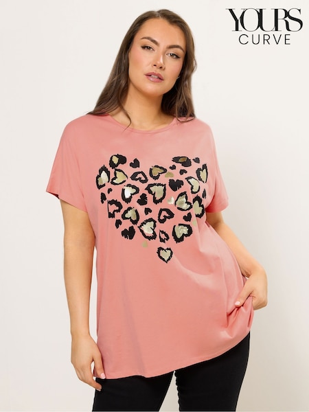 Yours Curve Orange Heart Print Top
