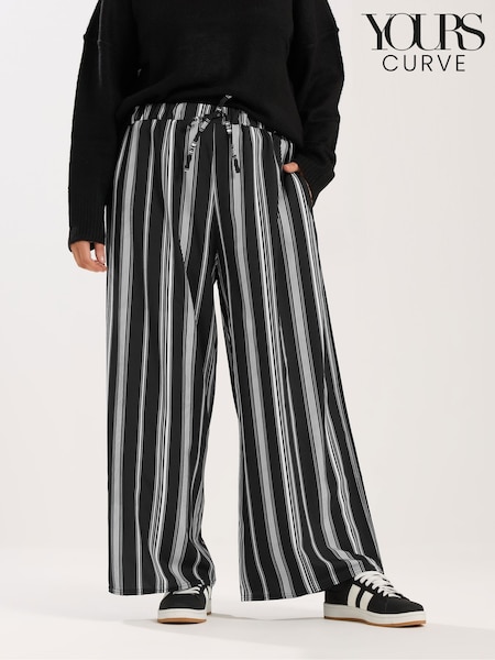 Yours Curve Black Wide Leg Striped Trousers