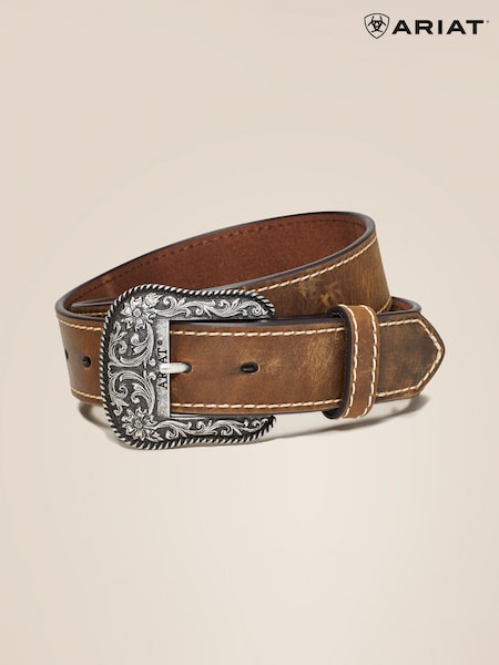 Ariat Brown Western Rhinestone Filigree Leather Belt