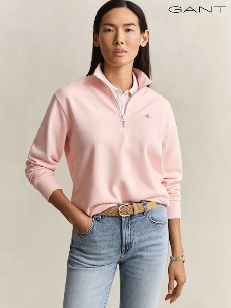 GANT Pink Shield Logo Quarter Zip Sweatshirt