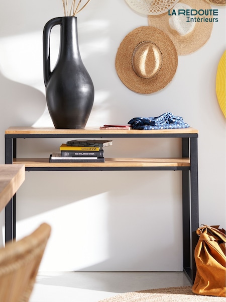 La Redoute Intérieurs Natural Hiba Industrial Solid Oak & Metal Console Table