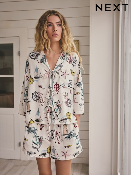 Their Nibs Navy Peacock Linen Blend Short Pyjama Set