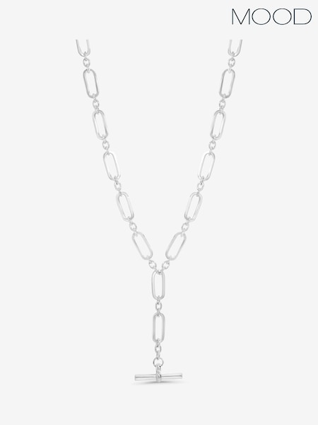 Mood Silver Tone Polished T Bar Necklace