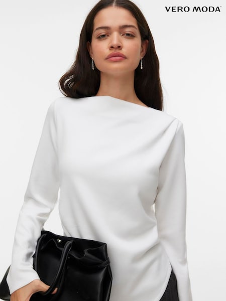 VERO MODA White Half Sleeve Round Neck Knitted Top