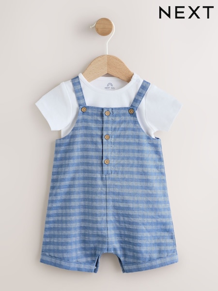 Blue Check Woven Dungaree and Bodysuit Set (0mths-2yrs)