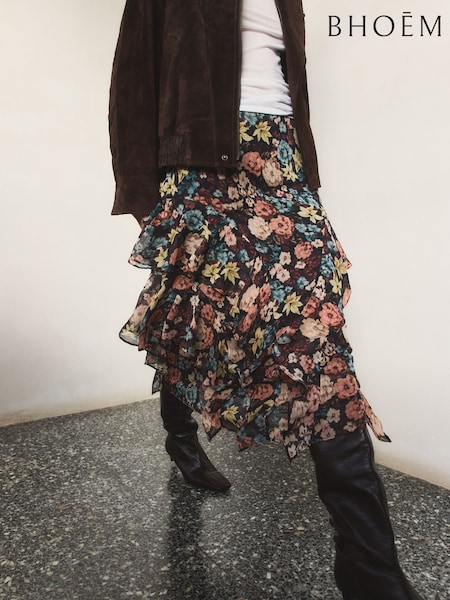 BHOEM Multi Frill Floral Print Maxi Skirt