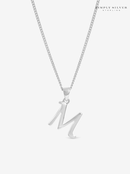 Simply Silver 925 Sterling Silver Initial Pendant - M