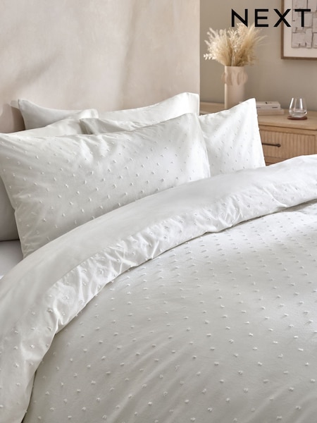 White 100% Cotton Woven Clip Jacquard Duvet Cover and Pillowcase Set