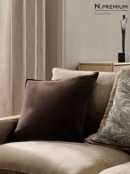 Chocolate Brown 50 x 50cm N. Premium Washed Cotton Velvet Cushion