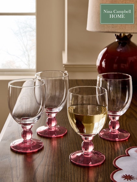 Nina Campbell Set of 4 Pink Goblet Wine Glasses