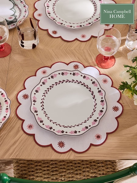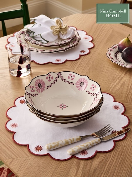Nina Campbell Set of 2 Red Floral Embroidered Placemats