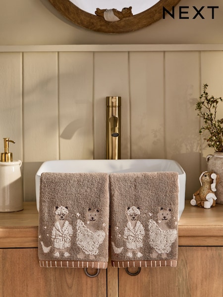 Set of 2 Natural Hamish The Highland Cow Face Cloths