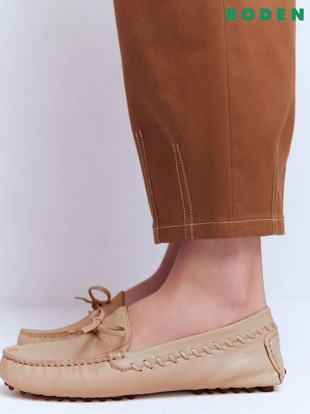 Boden Cream Heidi Stitched Soft Loafers