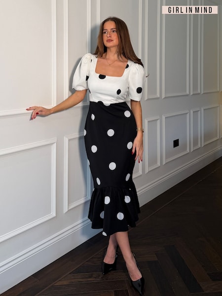Girl In Mind Black Jennifer Contrast Spot Midi Dress