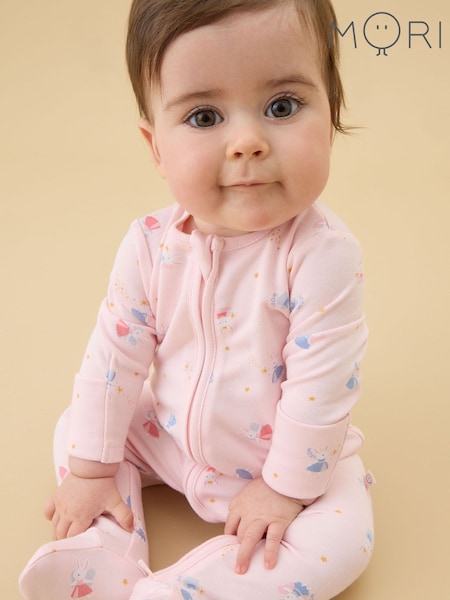 MORI Pink Enchanted Bunnies Clever Zip Supersoft Sleepsuit