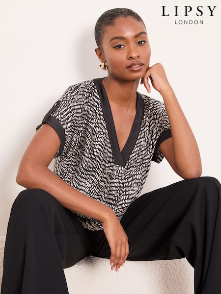 Lipsy Monochrome Utility V-Neck Short Roll Sleeve Top