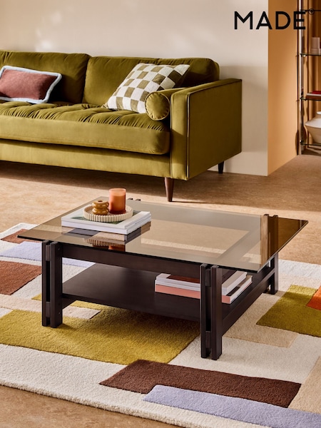 MADE.COM Dark Stained Oak Ellery Glass Fixed 6 Seater Dining Table