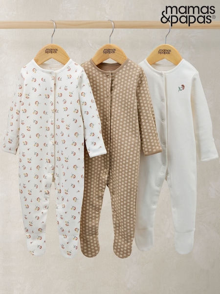 Mamas & Papas Brown Block Floral Sleepsuits Pack of 3