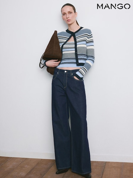Mango Blue Long Sleeve Striped Knit Cardigan