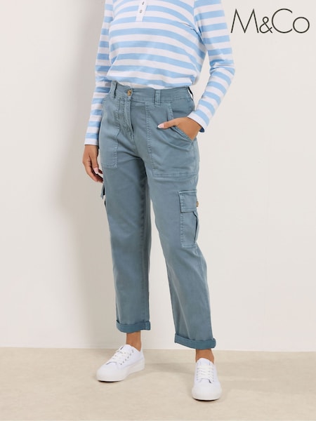 M&Co Blue Petite Half Placket Long Sleeve Printed Jersey Shirt