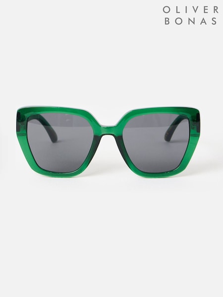 Oliver Bonas Green Crystal Cat Eye Sunglasses