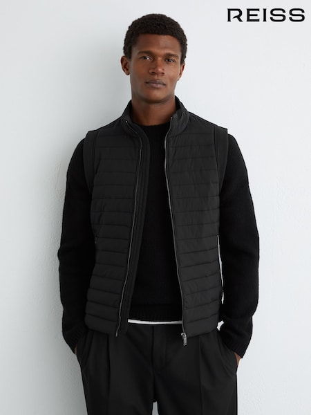 Reiss Black Caspian Quilt and Knit Zip-Through Gilet