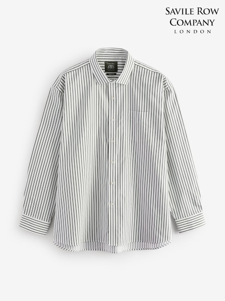 The Savile Row Company Striped Classic Fit Cotton Poplin Single Cuff Formal Brown Shirt