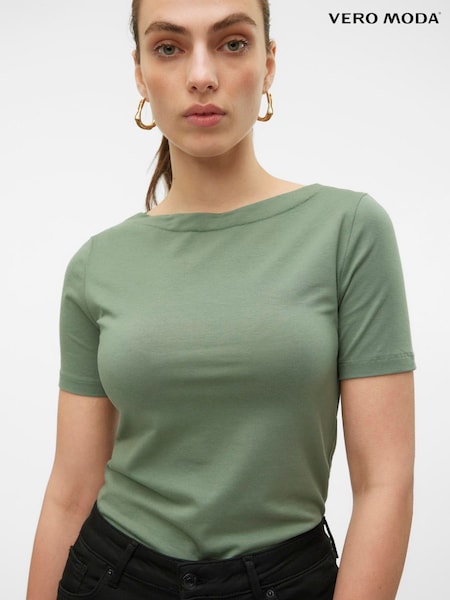 VERO MODA Green Short Sleeve Boat Neck T-Shirt