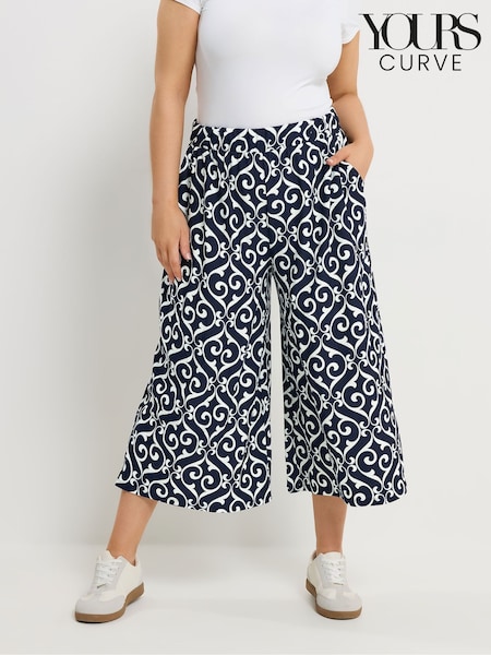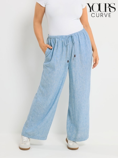 Yours Curve Blue Linen Look Beaded Wide Leg Trousers